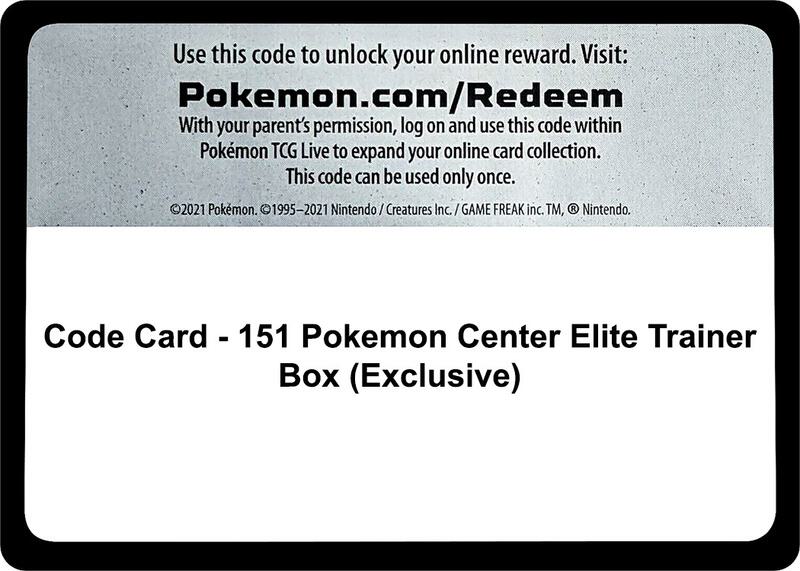 Code Card - 151 Pokemon Center Elite Trainer Box (Exclusive)